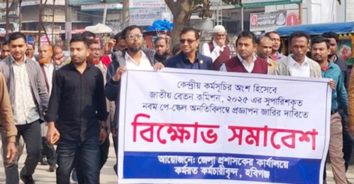 স্টাফ রিপোর্টার ॥ নবম পে-স্কেলের গেজেট প্রকাশসহ সাত দফা দাবিতে হবিগঞ্জে সরকারি চাকরিজীবীরা দুই ঘণ্টা কর্মবিরতি পালন ও বিক্ষোভ সমাবেশ করেছেন। গতকাল রোববার সকালে জেলা প্রশাসক কার্যালয়ের সামনে এ কর্মসূচি পালন করা হয়। বিক্ষোভ সমাবেশে বক্তারা বলেন, গত সাত বছর ধরে শান্তিপূর্ণ আন্দোলন চালিয়ে আসলেও সরকার কর্মচারীদের ন্যায্য দাবি আমলে নিচ্ছে না। গত ৫ ডিসেম্বর
