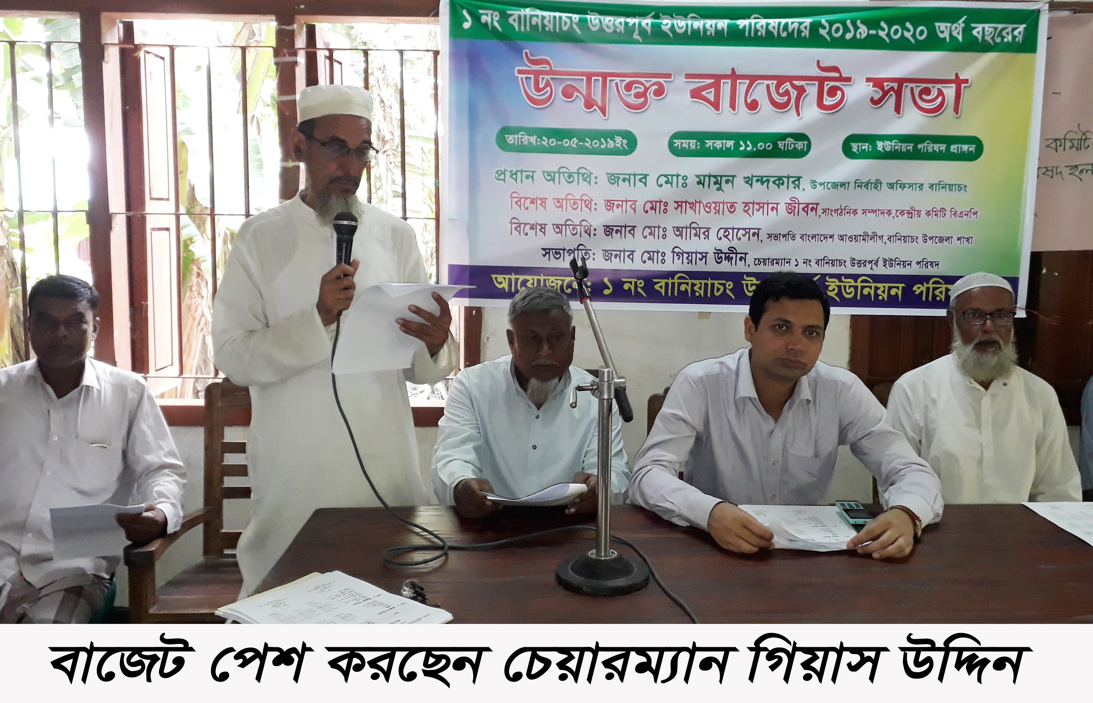 মখলিছ মিয়া, বানিয়াচং থেকে ॥ বানিয়াচং ১নং উত্তর পূর্ব ইউনিয়ন পরিষদের ২০১৯-২০২০ অর্থ বৎসরের উন্মুক্ত বাজেট ঘোষণা করা হয়েছে। ইউনিয়ন পরিষদ সভা কক্ষে উন্মুক্ত এ বাজেট অনুষ্টানে প্রধান অতিথি হিসেবে উপস্থিত ছিলেন উপজেলা নির্বাহী অফিসার মোঃ মামুন খন্দকার। জনাকীর্ণ পরিবেশে সকাল ১১টায় ইউনিয়ন পরিষদের চেয়ারম্যান মোঃ গিয়াস উদ্দিন বাজেট ঘোষণা করেন। শিক্ষা, স্বাস্থ্য, যোগাযোগ ও