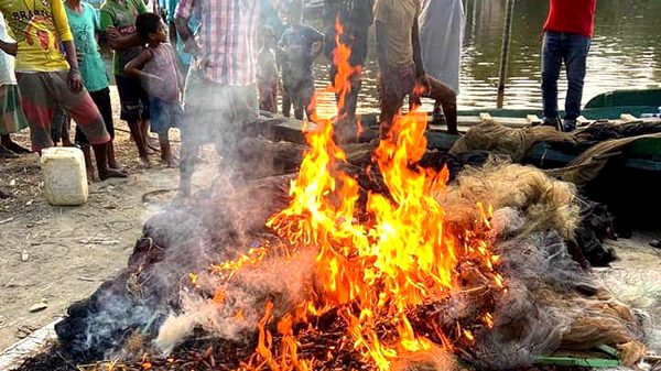 আবুল কাসেম, লাখাই থেকে ॥ জাতীয় মৎস্য সপ্তাহ উপলক্ষ্যে লাখাই উপজেলায় মৎস্য রক্ষা ও সংরক্ষণ আইনে মোবাইল কোর্ট পরিচালনা করা হয়েছে। গতকাল শনিবার বিকালে উপজেলার মাদনা, ব্ল্লুা ও ধলেশ্বরী এলাকায় অভিযান চালিয়ে সাড়ে ১০ হাজার মিটার কারেন্ট জাল ও ৩টি বেড় জাল জব্দ করে বামৈ গরুর বাজারে আগুনে পুড়িয়ে ধ্বংস করা হয়। ভ্রাম্যমাণ আদালত পরিচালনা
