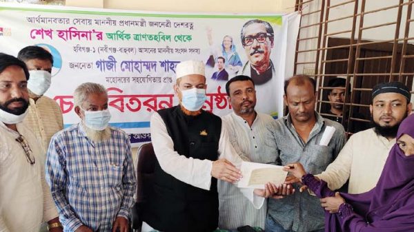 নবীগঞ্জ প্রতিনিধি ॥ প্রধানমন্ত্রী শেখ হাসিনার ত্রাণ ও কল্যাণ তহবিল থেকে হবিগঞ্জের নবীগঞ্জ ও বাহুবল উপজেলায় ক্যান্সার, কিডনি, প্যারালাইজডসহ বিভিন্ন রোগে আক্রান্ত ২৮ জনকে ১১ লক্ষ ১০ হাজার টাকার চেক প্রদান করেছেন হবিগঞ্জ-১ আসনের সংসদ সদস্য গাজী মোহাম্মদ শাহনওয়াজ মিলাদ এমপি। সোমবার দুপুরে সংসদ সদস্যের বাস ভবনে এসব চেক বিতরণ করা হয়। এ সময় উপস্থিত