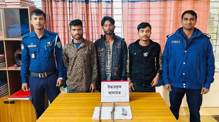 মাধবপুর প্রতিনিধি ॥ মাধবপুরে ছিনতাইয়ের প্রস্তুতিকালে দেশীয় অস্ত্রসহ ৩ পেশাদার ছিনতাইকারিকে গ্রেপ্তার করেছে পুলিশ। গতকাল শনিবার ভোর রাতে গোপন সংবাদের ভিত্তিতে নোয়াপাড়া ইউনিয়নের কড়রা পাকা রাস্তার উপর ছিনতাই এর প্রস্তুতিকালে তাদের গ্রেপ্তার করে। গ্রেপ্তারকৃতরা হল বেঙ্গাডোবা গ্রামের এমরান মিয়ার ছেলে মোঃ পারভেজ মিয়া (২৩), একই গ্রামের শামসুল হকের ছেলে মোঃ রবিউল আওয়াল রুবেল (৩৮), উপজেলায়
