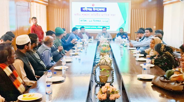 নবীগঞ্জ প্রতিনিধি ॥ নবীগঞ্জ উপজেলা আইনশৃঙ্খলা কমিটির মাসিক সভা অনুষ্ঠিত হয়েছে। গতকাল মঙ্গলবার দুপুরে নবীগঞ্জ উপজেলা পরিষদের হলরুমে আইনশৃঙ্খলা কমিটির মাসিক সভা অনুষ্ঠিত হয়। সভায় সভাপতিত্ব করেন নবীগঞ্জ উপজেলা নির্বাহী কর্মকর্তা মো. রুহুল আমিন। সভায় উপস্থিত ছিলেন নবীগঞ্জ থানার ওসি (তদন্ত) দুলাল মিঞা, দীঘলবাক ইউনিয়নের চেয়ারম্যান ছালিক মিয়া, নবীগঞ্জ প্রেসক্লাবের সাধারণ সম্পাদক ছনি আহমেদ চৌধুরী,