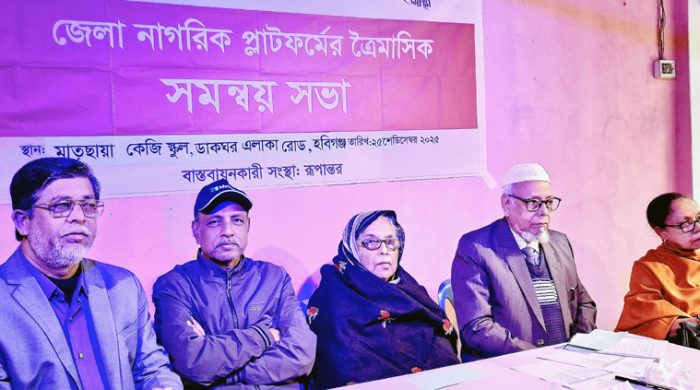 স্টাফ রিপোর্টার ॥ আস্থা প্রকল্পের আওতায় রূপান্তরের আয়োজনে জেলা নাগরিক প্লাটফর্মের ত্রৈমাসিক সমন্বয় সভা অনুষ্ঠিত হয়েছে। গতকাল ২৫ ডিসেম্বর বৃহষ্পতিবার সকালে শহরের ডাকঘর এলাকাস্থ মাতৃছায়া কেজি স্কুলে অনুষ্ঠিত সভায় সভাপতিত্ব করেন জেলা নাগরিক প্লাটফর্মের আহবায়ক অধ্যাপক ইকরামুল ওয়াদুদ। অনুষ্ঠানে শুভেচ্ছা বক্তব্য রাখেন ক্লাস্টার কো-অর্ডিনেটর হাসান তারেক। অনুষ্ঠানটি সঞ্চালনা করেন নাগরিক প্লাটফর্মের সদস্য সচিব বন্ধু মঙ্গল বিস্তারিত
