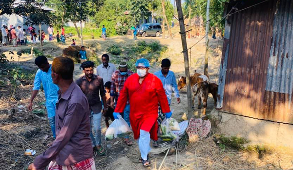 এর পূর্বে প্রতিদিনের ন্যায় দুপুরে তাঁর ব্যক্তিগত অর্থায়ণে শহরের সুরবিতান কেন্দ্রে হবিগঞ্জের গৃহবন্দি, কর্মহীন শিল্পীদের মাঝে সামর্থ্য অনুযায়ী খাদ্য সামগ্রী পৌছে দেন। পরে চলে যান সদর উপজেলার রাজিউড়া ও লুকড়া ইউনিয়ন। সেখানে প্রধানমন্ত্রীর পক্ষ থেকে হবিগঞ্জ জেলা প্রশাসকের মাধ্যমে প্রাপ্ত ইফতার সামগ্রী গ্রামের গৃহবন্দি, কর্মহীন মানুষের মাঝে পৌছে দেন।