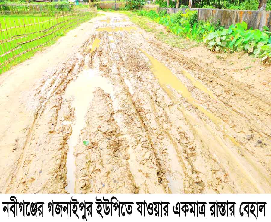 প্রায় ৩ মাস আগে রাস্তার কাজ সম্পন্ন করার মেয়াদ শেষ হলেও এখনো কোন অগ্রগতি নেই কাজের। দীর্ঘদিন ধরে বন্ধ রয়েছে কাজ। এর ফলে অল্প বৃষ্টির পরই মনে হয় রাস্তাগুলো যেন ধান বোনার জন্য প্রস্তুত করা হয়েছে। পায়ে হেটেও মানুষ চলাচল করতে পারেনা। ফলে ইউনিয়ন অফিসে সেবা নিতে যাওয়া জণসাধারণ ও আশপাশের মানুষ পড়েছেন চরম বিপাকে। এলজিইডি ও স্থানীয় সূত্রে জানা গেছে, নবীগঞ্জ উপজেলার দেওপাড়া-শতক পাকা সড়ক থেকে গজনাইপুর ইউনিয়ন পরিষদ হয়ে গদারবাজার পর্যন্ত সড়ক দিয়ে প্রতিনিয়ত যাতায়াত করেন আশপাশের বেশ কয়েকটি গ্রামের সাধারণ মানুষসহ স্কুল কলেজে শিক্ষার্থীরা। পাশাপাশি এই সড়ক দিয়েই ইউনিয়ন পরিষদের নামে বরাদ্দকৃত চাল, জরুরী মালামাল ট্রাকসহ বিভিন্ন যানবাহন যোগে আনা নেয়া হয়। দীর্ঘদিন সংস্কারে অভাবে অযত্নে অবহেলায় পড়ে ছিল সড়কটি। উক্ত সড়ক স্থানীয় সরকার প্রকৌশল অধিদপ্তরের (এলজিইডি) আওতাভূক্ত। দীর্ঘপ্রতিক্ষার পর গত বছরের শুরু দিকে সড়কের ৭৪০ মিটার স্থান পাকাকরণে প্রায় ৫৪ লাখ ৪৭ হাজার ৯৬৪ টাকা ব্যয়ে টেন্ডার হয়। কাজটির