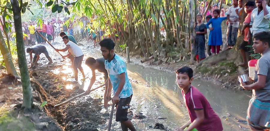 এ ব্যাপারে উপজেলা সহকারী কমিশনার (ভূমি) মোঃ রুহুল আমিন জানান, উপজেলা নির্বাহী কর্মকর্তা নির্দেশ দিলে তিনি খাল ও রাস্তার জায়গা দখলমুক্ত করেন। প্রশাসনের লোকজনকে কাছে পেয়ে কোমলমতি শিক্ষার্থীরা নিজেরাই মাটি কেটে সহযোগিতা করে।