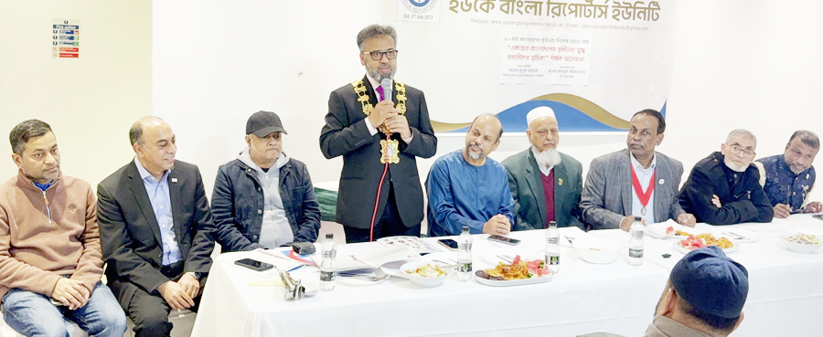 গত ৭ মার্চ শনিবার বিকেল ৩ টা থেকে ৬ টা পর্যন্ত পূর্ব লন্ডনের একটি রেস্টুরেন্টের হলরুমে অনুষ্ঠিত সাংবাদিকতা বিষয়ক ট্রেনিং, ইফতার মাহফিল ও বিষয় ভিত্তিক আলোচনা সভায় সভাপতিত্ব করেন ইউকে বাংলা রিপোর্টার্স ইউনিটির সভাপতি ও বাংলা মিররের বিশেষ প্রতিনিধি- মুহাম্মদ শাহেদ রাহমান। ইউকে বাংলা রিপোর্টার্স ইউনিটির সাধারণ সম্পাদক ও এবিসি বাংলা নিউজ এর সম্পাদক আব্দুল বাছির এর পরিচালনায় সভায় প্রধান অতিথি হিসেবে বক্তব্য রাখেন- লন্ডন বারা অব টাওয়ার হ্যামলেটস কাউন্সিলের স্পিকার কাউন্সিলর সুলুক আহমদ ।