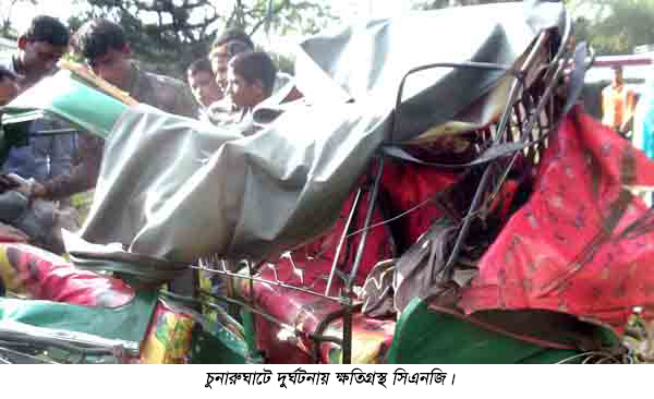 গতকাল দুপুরে চুনারুঘাট থেকে ছেড়ে আসা শায়েস্তাগঞ্জগামী যাত্রীবাহী একটি সিএনজি (হবিগঞ্জ থ-১১-২২৬৭) উল্লেখিত স্থানে পৌছুলে বিপরীতমুখী একটি মাইক্রোবাসের (ঢাকা মেট্রো-গ-১৩-২২১৯) সাথে মুখোমুখি সংঘর্ষ বাধে। এতে শাহজাহান মিয়াসহ ৪জন আহত হয়। গুরুতর আহত অবস্থায় শাহাজাহান মিয়াকে চুনারুঘাট হাসপাতালে নিয়ে গেলে কর্তব্যরত ডাক্তার মৃত ঘোষণা করেন। দুর্ঘটনায় আহত হবিগঞ্জ সদর উপজেলার চৌধুরীবাজার এলাকার শামছু মিয়ার পুত্র রুবেল মিয়া (৩০), হবিগঞ্জ মোহনপুর এলাকার ফয়জুল হকের পুত্র মনিরুল রহমান (৪৫) ও চুনারুঘাট রানীগাঁও ইউনিয়নের বড়জুষ গ্রামের লুৎফুর রহমানের পুত্র সোহাগ মিয়া (২৫)কে চুনারুঘাট হাসপাতালে চিকিৎসা দেয়া হয়েছে। খবর পেয়ে পুলিশ ঘটনাস্থলে গিয়ে মাইক্রোবাস ও সিএনজিকে চুনারুঘাট থানায় নিয়ে