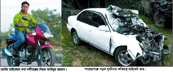 স্থানীয় সূত্রে জানা গেছে, আমিনুর রহমান তার বন্ধুকে সাথে নিয়ে মোটরসাইকেলযোগে বাড়ি থেকে সৈয়দপুর যাচ্ছিল। পথিমধ্যে জিয়াপুর নামক স্থানে পৌছুলে একটি গাছের সাথে মোটরসাইকেলের সজোরে ধাক্কা লাগে। এতে আমিনুর ও আরোহী দু’জনই গুরুতর আহত হয়। স্থানীয় লোকজন তাদেরকে উদ্ধার করে সিলেট ওসামনী মেডিকেল কলেজ হাসপাতালে প্রেরণ করেন। সেখানে কর্তব্যরত চিকিৎসক আমিনুরকে মৃত ঘোষনা করেন। অপর আহতকে ভর্তি করা হয়েছে।