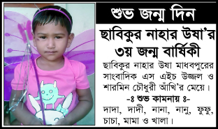 ছাবিকুর নাহার উষা’র ৩য় জন্ম বার্ষিকী