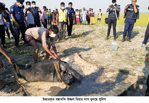 এদিকে হবিগঞ্জের পুলিশ সুপার মোহাম্মদ উল্ল্যা (বিপিএম-পিপিএম) এর নির্দেশে অতিরিক্ত পুলিশ সুপার রবিউল ইসলাম, লাখাই থানার ওসি এমরান হোসেন এবং এসআই আমিনুল ইসলামসহ একদল পুলিশ গত ২১ এপ্রিল রবিবার ধর্মপুর গ্রামের অভিযান চালিয়ে উজ্জলের প্রেমিকা কলেজ ছাত্রী ফারজানা আক্তার ও তার পিতা মঞ্জু মিয়াকে জিজ্ঞাসাবাদের জন্য আটক করে। রাতে অতিরিক্ত পুলিশ সুপার রবিউল ইসলাম লাখাই থানায় গিয়ে রাতভর আটক প্রেমিকা ফারজানা ও মঞ্জু মিয়াকে জিজ্ঞাসাবাদ করেন। জিজ্ঞাসাবাদের এক পর্যায়ে ভোর রাতে ফারজানা হত্যার দায় স্বীকার করে। এ সময় সে কিভাবে প্রেমিক উজ্জলকে হত্যা ও লাশ গুম করেছে এর বর্ণনা দেয়। এ সময় পুলিশ লাশের সন্ধান জানতে চাইলে ফারজানা জানায় লাশ কোথায় আছে তা তার বাবা বলতে পারবে। পরে পুলিশের জিজ্ঞসাবাদে ফারজানার পিতা মঞ্জু মিয়ার দেয়া তথ্য অনুযায়ী মঞ্জু মিয়াকে সাথে নিয়ে গতকাল সোমবার দুপুরে অতিরিক্ত পুলিশ সুপার রবিউল ইসলামের নেতৃত্বে লাখাই থানার ওসি মোাহাম্মদ এমরান হোসেন, মামলার তদন্তকারী কর্মকর্তা আমিনুল ইসলামসহ পুলিশের একটি টিম অভিযান চালিয়ে ধর্মপুর গ্রাম থেকে ১ কিলোমিটার দুরে মেদি বিলের কচুরিফানার নীচ থেকে উজ্জলের বস্তাবন্দি অর্ধগলিত লাশ উদ্ধার করে। এ সময় লাশের দূর্গন্ধে এলাকার পরিবেশ ভারী হয়ে উঠে। উৎসুক জনতাকে সামাল দিতে হিমসিম খেতে হয় পুলিশের। সন্ধ্যায় লাখাই থানা প্রাঙ্গণে এক প্রেসব্রিফিং করেন হবিগঞ্জের পুলিশ সুপার মোহাম্মদ উল্ল্যা (বিপিএম-পিপিএম)। আটককৃত ফারজানার বরাত দিয়ে পুলিশ সুপার মোহাম্মদ উল্ল্যা জানান, উজ্জল ও ফারজানার মাঝে প্রায় তিন মাস পুর্বে ফেইসবুকের মাধ্যমে প্রেমের সম্পর্ক গড়ে উঠে। এ সম্পর্ক এক সময় শারিরীক সম্পর্কে রূপ নেয়। তারা প্রায় সময়ই ফারজানার বাড়িতে কেউ না থাকলে শারিরীক সম্পর্কে লিপ্ত হতো। ঘটনার দিনও ফারজানার পিতা-মাতা ঢাকায় অবস্থান করছিল। এ সুযোগে প্রেমিক উজ্জল তার প্রেমিকার বাড়িতে যায়। গত ২০ ফেব্র“য়ারি রাতে ফারজানা এবং উজ্জল যখন আমুদ ফুর্তি করছিল তখন উজ্জলের ফোনে তাঁর অন্য প্রেমিকার কল আসে। এ নিয়ে তাদের মধ্যে বাক-বিতন্ডা হয়। এক পর্যায়ে উজ্জল তাকে গাল মন্দ করে। তখন ফারজানা নিজে নিজে আত্মহত্যা করার সিদ্ধান্ত নিলেও পরে সে মত পাল্টায় এবং সে সিদ্ধান্ত নেয় নিজেকে শেষ করবে না। বরং তার ভন্ড প্রেমিক উজ্জলকে আর বাচঁতে দিবে না। তখন শিল পাঠার পুতাইল দিয়ে উজ্জলের মাথায় আঘাত করে এতে উজ্জল মাটিতে লুঠিয়ে পড়ে।